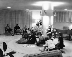 Description: group of women in Haury Hall lounge, maybe around the time of the building dedication, Oct. 13, 1958