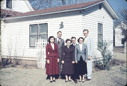 Description: "S. V. Delegations, Geary Okla '52. Vern Jantz, Dave? Neufeld, Betty Voran, Betty Quiring, Hugo? Hildebrand"; S.V. stands for Student Volunteer (a missions promotion group)